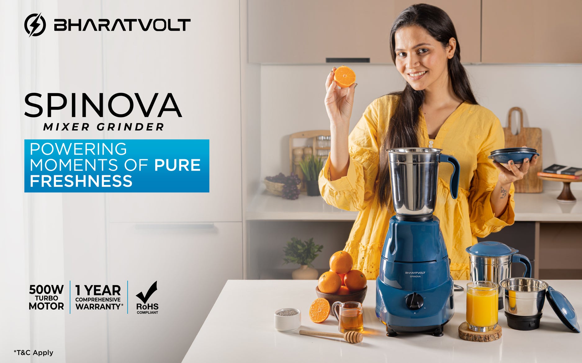 With The BharatVolt Spinova Mixer Grinder- Crafted for easy blends, smooth grinds, and happy meals